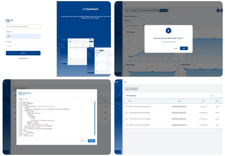 Implementation of an internal administration dashboard for the 4D Cloud platform.